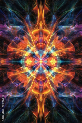abstract, art, colourful, design, symmetry, pattern, light, energy, vibrant, digital, illusion, texture, flow, harmony, creativity, visual, aesthetic, kaleidoscope, radiance, warmth, movement, fantasy, glow, brilliance, depth, exploration, imagination, hallucinogen, beauty, inspiration, dynamic, high-coloured, enchanting, captivating, aglow, striking, mesmerizing, aethereal, shape, contrast, transformation, artistic, surreal, perception, wonder