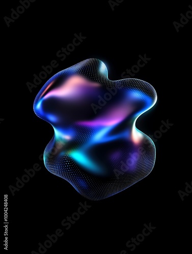 A vibrant abstract shape with a glossy surface and captivating colors, set against a black background. A minimalist poster in metallic and chrome gradient style.