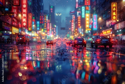 city street, night, street light, bokeh, photorealistic, urban, city landscape, colourful, vibrant, light, traffic, blur, photo, city lights, nightlife