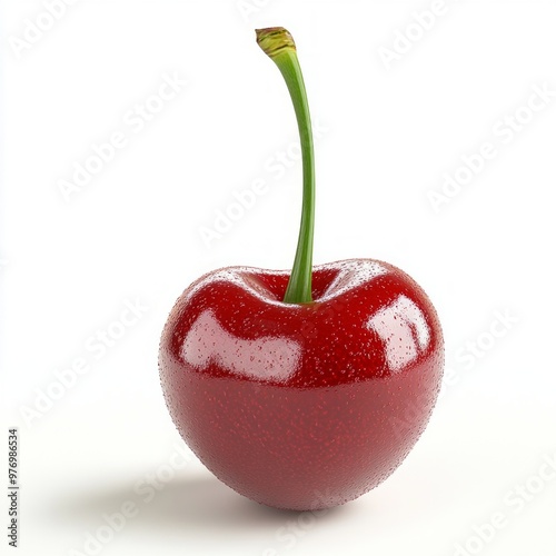 A vibrant and glossy cherry stands out with its bright red color and fresh green stem. This image captures the essence of freshness and sweetness. Perfect for food-related themes. AI