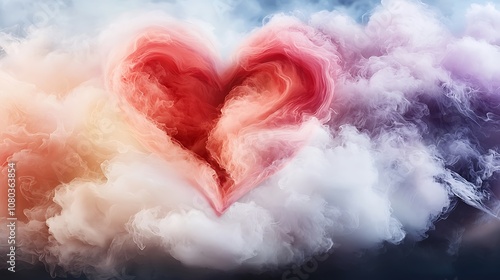 A vibrant and mesmerizing Valentine's Day heart formed in the clouds, swirling with hues of pink, red, and purple, creating a stunning and ethereal abstract background.