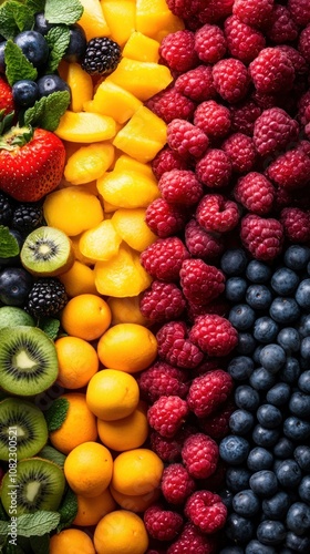 fruit, berry, strawberry, blueberry, raspberry, mango, kiwi, blackberry, yellow, green, red, blue, healthy, fresh, organic, sweet, tropical, seasonal, dessert, snack, nourishment, vitamin, colourful, diet, harvest, nature, garden, cookery, meal, vibrant, arrangement, summer, juicy, delicious, produce, variety, platter, food, aesthetic, epicure, presentation, culinary, freshness, favor, enjoyment, indulgence, beauty