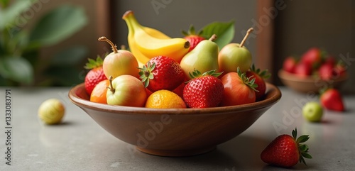 fruit, healthy, fresh, bowl, strawberry, banana, pear, orange, organic, wellness, kitchen, food photography, nourishment, dessert, vegan, dietary, spring, summer, vibrant, colourful, natural, lifestyle, home decor, cooking, market, epicure, harvest, vegetarian, nature, snack, diet, wholesome, tropical, modern, rustic, natural light, decoration, table, cookery, appetising, delicious, smoothie, vitamin