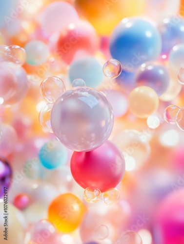 A vibrant array of colorful bubbles floating in a dreamy background.