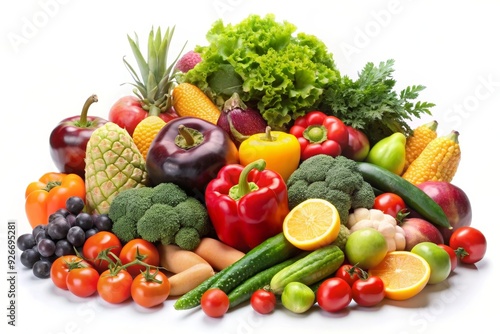 fruit, vegetable, produce, healthy, fresh, organic, natural, vitamin, mineral, nourishment, diet, food, eating, lifestyle, healthy eating, wellness, agriculture, farm, garden, harvest, bounty, vibrant, colourful, red, green, yellow, orange, purple, white, background, isolated, white background, food photography, still life, healthy lifestyle, grocery, supermarket, market, farmers market, cooking, ingredient, salad, receipe, vegetarian, vegan, breakfast