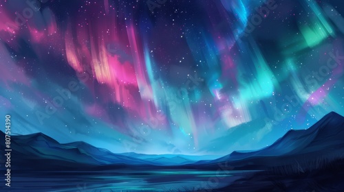 aurora, nature, night, winter, lake, landscape, water, light, background, abstract, glow, travel, mountain, blue, sky, dark, design, illustration, pattern, beautiful, sunset, summer, up, vector, isolated, icon, vibrant, gradient