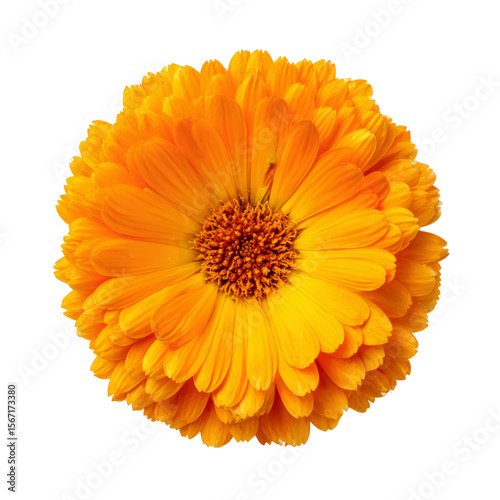 A vibrant, beautiful Calendula flower in full bloom. Its petals are a bright orange color