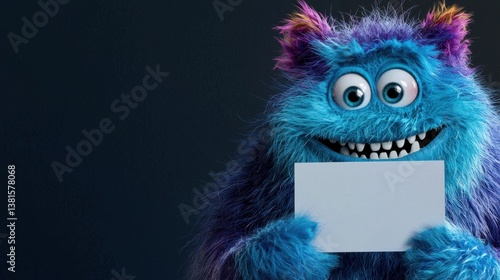 colourful, creature, furry, monster, smiling, character, blue, purple, accent, dark, background, blank, card, joyful, expression, playful, design, fantasy, whimsical, friendly, high-coloured, colours, soft, fur, imaginative, art, unique, fun, adorable, cute, entertainment, greeting, holding, animated, blithe, mood, bright, cartoon, expressive, eye, fictional, engaging, cheerful, appealing, joy, creative, charming
