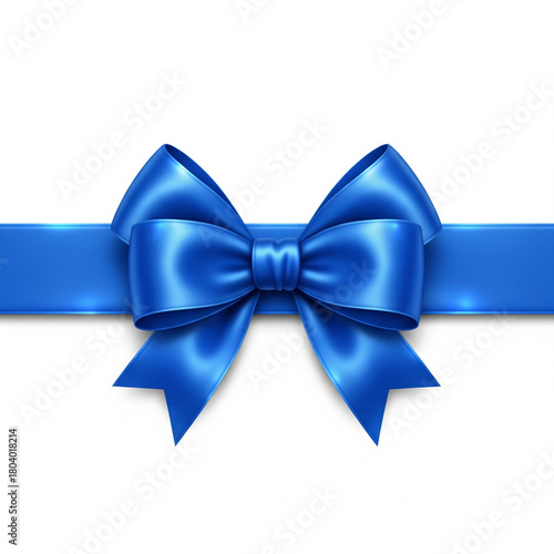 A vibrant blue satin ribbon tied into a perfect bow elegantly displayed isolated on white background