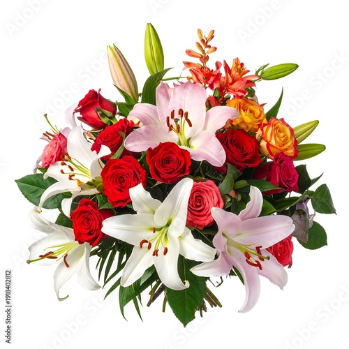bouquet, flower, rose, lily, blossom, bloom, colourful, arrangement, floral, flower petals, green, leaf, fragrant, delicate, celebration, gift, beauty, nature, fresh, vibrant, romantic, festive, joy, present, graceful