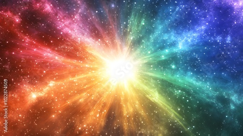 A vibrant burst of rainbow colors, radiating outward from the center in an explosion effect