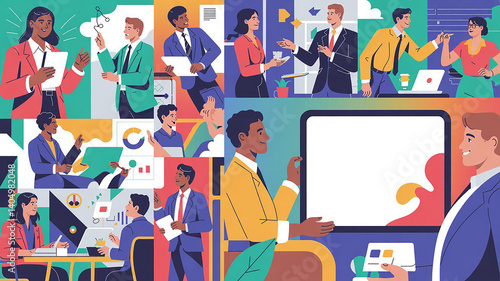 diverse, business, teamwork, collaboration, communication, meeting, office, professional, modern, innovation, creativity, colourful, energetic, multicultural, leadership, presentation, graphic design, illustration, technology, entrepreneurship, strategy, productivity, success, positive, friendly, happy, confident, graphic, design, vector, contemporary, people, discussion, motivation, corporate culture, graphic elements, businessperson, dynamic