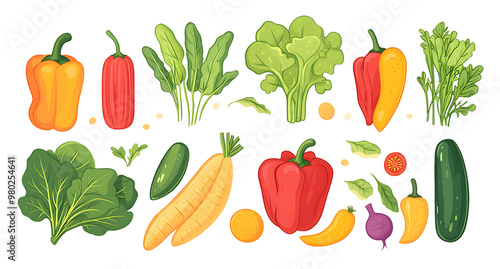 A vibrant collection of fresh vegetables including peppers, lettuce, and cucumbers, perfect for healthy lifestyle and recipes.