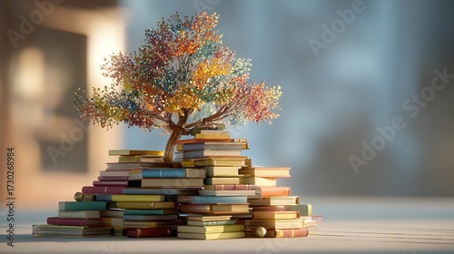 tree, cognition, growth, book, education, learning, wisdom, story, history, past, time, vintage, old, stack, pile, literature, reading, page, spine, cover, colourful, vibrant, bead, art, craft, decoration, symbol, concept, idea, metaphor, imagination, creativity, inspiration, development, progress, future, hope, dream, fantasy, magical, enchanting, beautiful