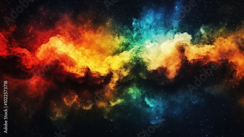 A vibrant cosmic cloud of colors resembling a nebula in space.