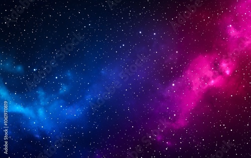 A vibrant cosmic scene depicting a starry night sky with swirling colors of blue and pink.