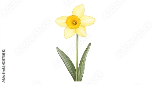 A vibrant daffodil with striking yellow petals and a central cup. Set against a white isolated background, this flower symbolizes renewal and spring.