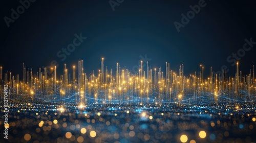 A vibrant digital cityscape showcases glowing skyscrapers and lights in a harmonious blend of blue hues, creating a futuristic urban atmosphere