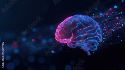 A vibrant, digital representation of a brain surrounded by colorful particles, symbolizing intelligence and technology.