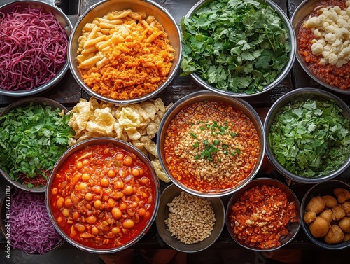 A vibrant display of authentic thai street food featuring a variety of colorful dishes and flavors for food lovers