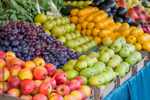A vibrant display of fresh produce at a farmers market