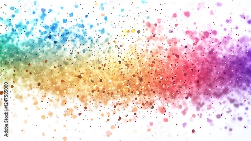 A vibrant explosion of colorful dots and sparkles against a white background.