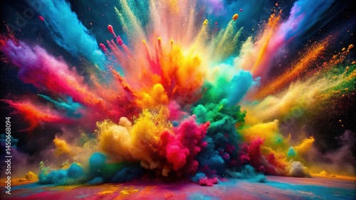 A vibrant explosion of colorful powder erupts against a dark background, creating a mesmerizing spectacle of swirling hues and dynamic energy.