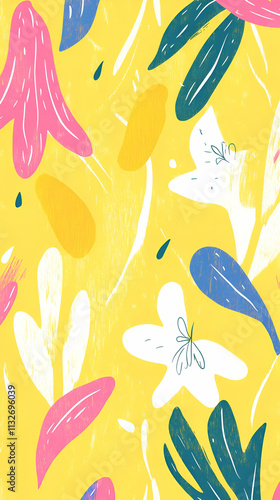 flower, leaf, pattern, vibrant, yellow, design, nature, illustration, colours, art, aesthetic, graphic, decorative, spring, summer, bright, cheerful, botanical, texture, background, foliage, whimsical, creative, organic, stylised, floral, beauty, playful, fresh, lively, modern, simple, abstract, optical, harmony, unique, element, shape, colours, artistic
