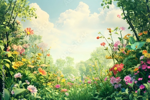 garden, flower, nature, greenery, blossom, colourful, sky, plant, vibrant, sunny, landscape, flower petals, meadow, bright, spring, flora, beauty, tranquil, serene, wildflower, foliage, scenery, growth, botanical, sunlight, seasonal, peaceful, environment, blooming, leaf, daylight, park, sunshine, cheerful, fresh, creative, idylli, romantic, artistic, charme, scenic, attraction, springtime