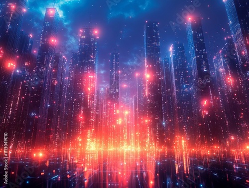vibrant, futuristic, city landscape, night, star, sky, light, building, blues, science fiction, setting, technology, light, architecture, abstract, art, background, texture, pattern, design, colourful, creative, modern, geometric, shape, line, concept, dynamic, energy, motion, graphic, visual, minimal, decorative, trendy, stylish