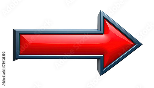 A vibrant, glossy, red arrow with a dark gray trim, pointing to the right