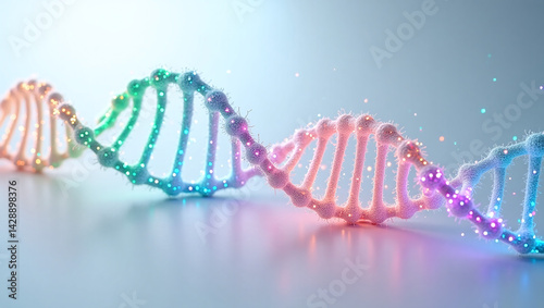 A vibrant, glowing DNA double helix built from neon tubes and light particles, twisting elegantly on a pure white background — perfect for science, health, or biotech themes.