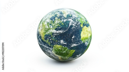 A vibrant green globe symbolizing Earth, isolated on a white background, representing sustainability and environmental care.