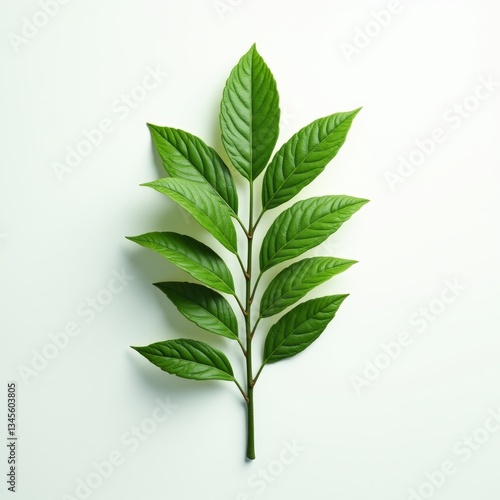 A vibrant green leaf with pointed edges and a slender stem