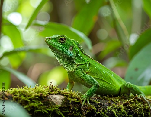 lizzard, green, jungle, nature, wildlife, reptile, rainforest, tropical, fauna, closeup, forest, scale, detail, animal, moss, tree branch, insect, blur, sharpened, photo, amphibian