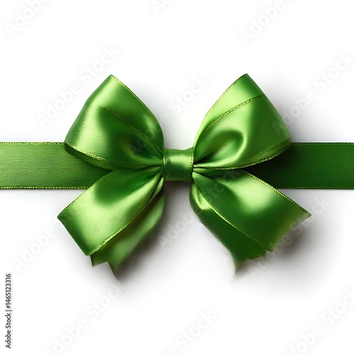 A vibrant green ribbon, meticulously crafted into a bow, takes center stage against a pristine white backdrop