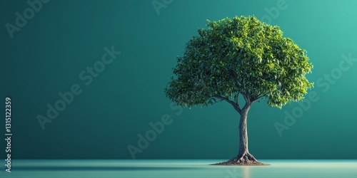 A vibrant green tree stands tall against a soft teal background, symbolizing growth and tranquility. This natural image captures the essence of serenity and beauty.