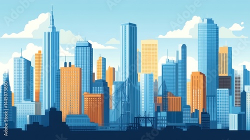 A vibrant illustration of a bustling city skyline.