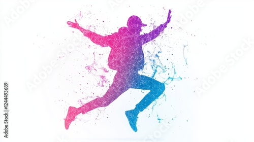 person, leap, energy, joy, freedom, colours, splash, vibrant, movement, graphic, signature, lively, narrative, passion, visual, silhouette, uplift, imagery, abstract, celebration, expression, showcase, aesthetic, masterpiece, happiness, active, palette, excitement, high-coloured, artistic, composition, playful, artwork, dynamic, design, figure, motif, cheerful, capture