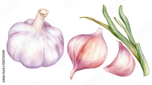 A vibrant illustration of garlic and green onions, perfect for culinary designs.