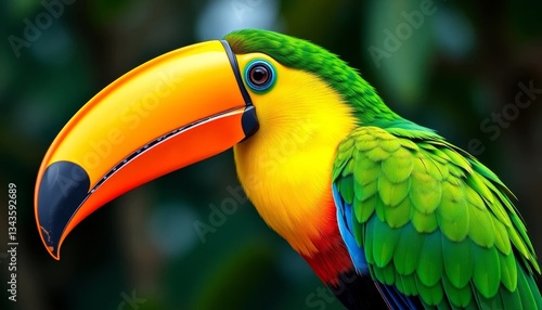 A Vibrant Keel-Billed Toucan Portrait Showing Its Striking Plumage and Enormous Bill Against a Soft-Focus Background