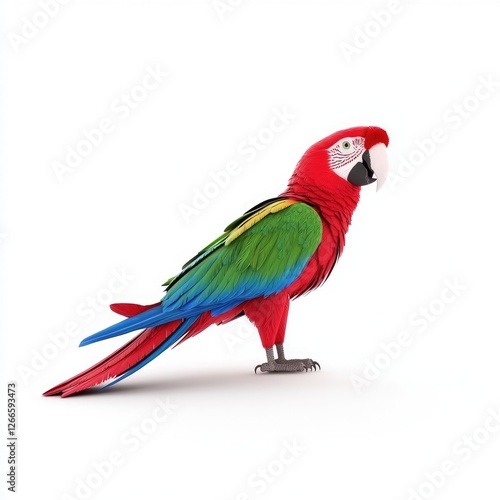 A vibrant macaw with stunning red, blue, and green feathers, showcasing its beauty., on a white background