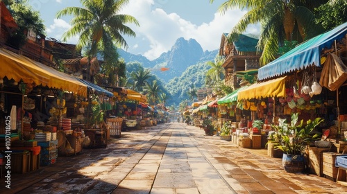 market, stall, colours, greenery, mountain, landscape, tropical, palm, nature, shop, good, culture, travel, scenery, sunlight, vibrant, street, people, activity, plant, architecture, trade, local, artisan, produce, environment, tour tourism, exotic, community, heritage, economy, exploration, tradition, bustling, bustle, atmosphere, craft, texture, village, lifestyle, commerce, seller, marketplace, path
