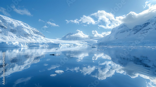 A vibrant nature iceberg landscape with seals resting on the floating ice