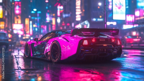 car, sport, neon, urban, night, rain, light, street, speed, design, technology, wheel, luxury, performance, aesthetic, city, modern, vibrant, photo, motion, shiny, illumination, atmosphere, landscape, detail, style, colourful, sleek, dynamic, environment, culture, entertainment, travel, lifestyle, adventure, energy, excitement, futuristic, ambience