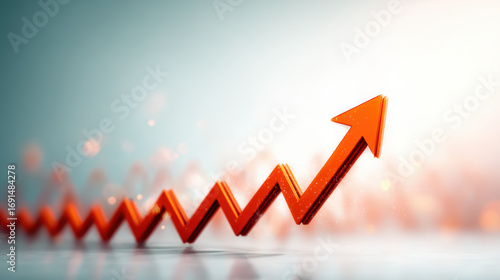 A vibrant orange arrow points upward, symbolizing growth and progress against a soft, blurred background.