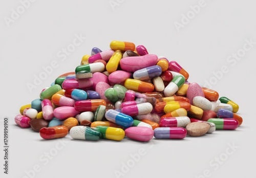 pill, capsule, medication, colourful, pharmaceutical, drug, medicine, heap, pile, stack, assorted, vibrant, many-coloured, medicals, health, treatment, dosage, prescription, overdose, pharmacy, therapy, health care, disease, disease, care, relief, make well, prevention, pain, symptom, recovery, wellness, stacked, three-dimensional