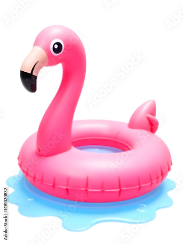 A vibrant pink flamingo pool float, ideal for summer fun, isolated against a pure white backdrop.