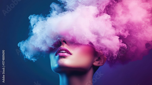 mental health, wellness, woman, smoke, colourful, portrait, art, aethereal, visual, dreamy, surreal, chic, lighting, illumination, inspiration, neon, make-up, cosmetic, atmosphere, glow, fantasy, vibrant, photo, trend, emotion, aesthetic, silhouette, elegance, expression, bold, artistic, imagery, striking, scene, allure, face, modern, cloud, style, design, fashion, creative, beauty, wig, hair, party, carnival, person, clown