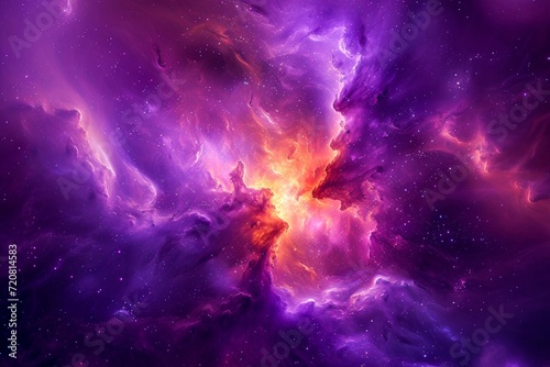 A vibrant purple and orange nebula illuminates the vast expanse of the universe, drawing our eyes to the endless possibilities and mysteries of outer space